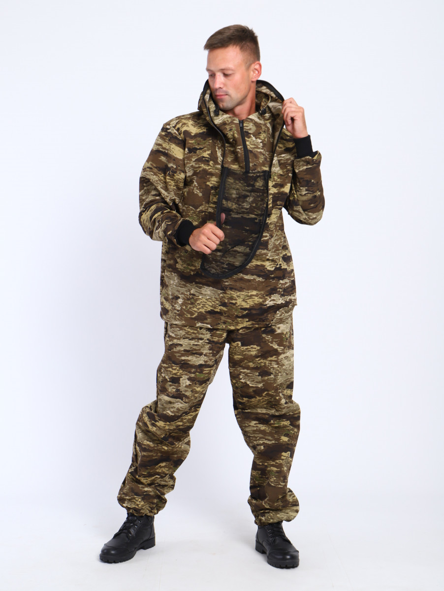 Энцефалитный костюм мужской летний выполнен из плотной ткани рипстоп незаменим для рыбалки и туризма. Маскировочный летний костюм защищает от клещей и комаров, благодаря манжетам на рукавах, резинки по низу брюк и сетки на капюшоне. Противомоскитный костюм состоит из камуфляжной куртки анорак прямого кроя и тактических брюк. Куртка летнего макхалата имеет защитный втачной капюшон с антимоскитной сеткой, так же есть карман на груди для противомоскитной сетки. На рукавах камуфляжной куртки имеются манжеты, что обеспечивает дополнительную защиту от насекомых. Брюки на средней посадке имеют манжеты снизу и 2 кармана на пуговицах. Камуфляжный костюм с защитной антимоскитной сеткой на капюшоне будет прекрасным подарком для лесника, пчеловода, охотника или рыболова. Идеально подходит для прогулок и работы в лесных условиях, сво , для маскировки при игре в пейнтбол , лазертаг . Спецодежда высокого качества российского производителя.