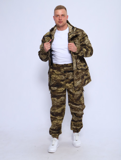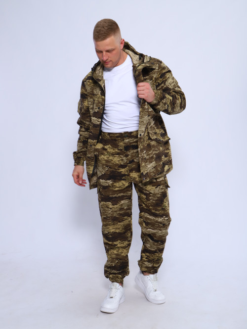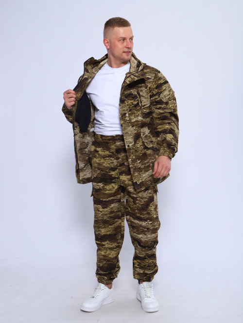 Куртка мужская длинная с закрытой застежкой на молнии и кнопках, а также с регулировкой по талии и на рукавах. Подойдет для мобилизованных, для мобилизации и военных. Задние половинки под коленом собраны резинкой, пояс на резинке, низ также на резинке. Важно: подтяжки с костюмом не идут.