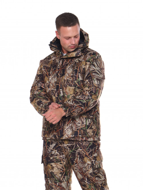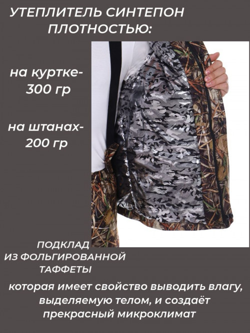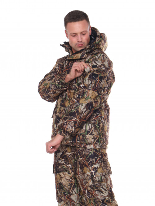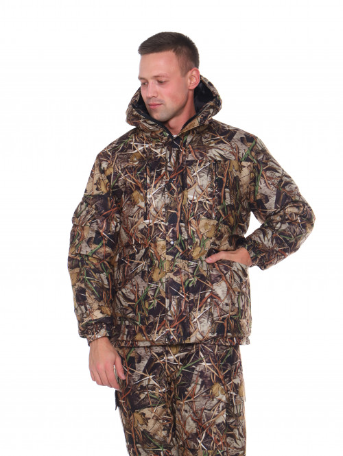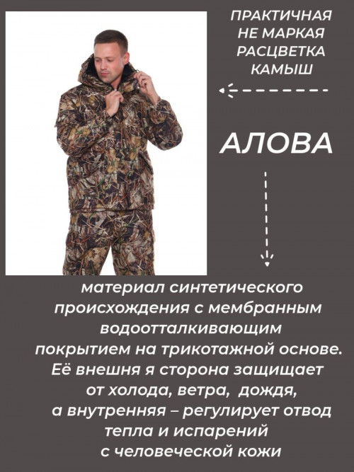 Алова (Alova) – материал синтетического происхождения с мембранным водоотталкивающим покрытием на трикотажной основе. Её внешняя сторона защищает от холода, ветра, дождя, а внутренняя – регулирует отвод тепла и испарений с человеческой кожи. Сшитая из ткани Алова одежда мягкая достаточно легкая и создает максимум комфорта: надежно защитит от непогоды, позволит всегда чувствовать себя комфортно – не перегреваясь и не переохлаждаясь, к тому же не шуршит, не электризуется и при хорошем уходе прослужит очень долго. Из такой ткани сшит наш теплый костюм, который состоит из куртки свободного кроя на центральной застежке-молнии с планкой на кнопках и брюк свободного покроя. Мультикам комплект похож на армейский костюм камуфляжный и рассчитан на зиму так как имеет прокладку из синтепона ( на куртке плотность 300, на штанах 200) и подкладку внутреннюю из фольгированной таффеты, которая имеет свойство выводить влагу, выделяемую телом, и создаёт прекрасный микроклимат, не накапливает статическое электричество. Защитный костюм подходит для зимней и демисезонной рыбалки или охоты. Куртка мужская длинная имеет регулировку по талии и на рукавах. Подойдет для мобилизованных, для мобилизации и военных. На куртке имеются большие карманы - врезные на молнии в области груди, а также накладные по низу куртки, что является очень удобным решением. Два боковых накладных кармана с клапаном. Мужские тактические брюки джоггеры имеют несколько карманов на липучке с клапанами и гульфик, под коленом собраны резинкой, пояс на резинке, есть шлевки под ремень, низ также на резинке, все швы тактической одежды прошиты армированными нитями и делают костюм военный прочным и износостойким. Охотничий костюм рыболовный защитного цвета маскхалат позволит слиться с природой и совсем не маркий. Уход: Военная одежда для мужчин ручная либо деликатная стирка при 30 градусах, без отжима. Сушка на плечиках.